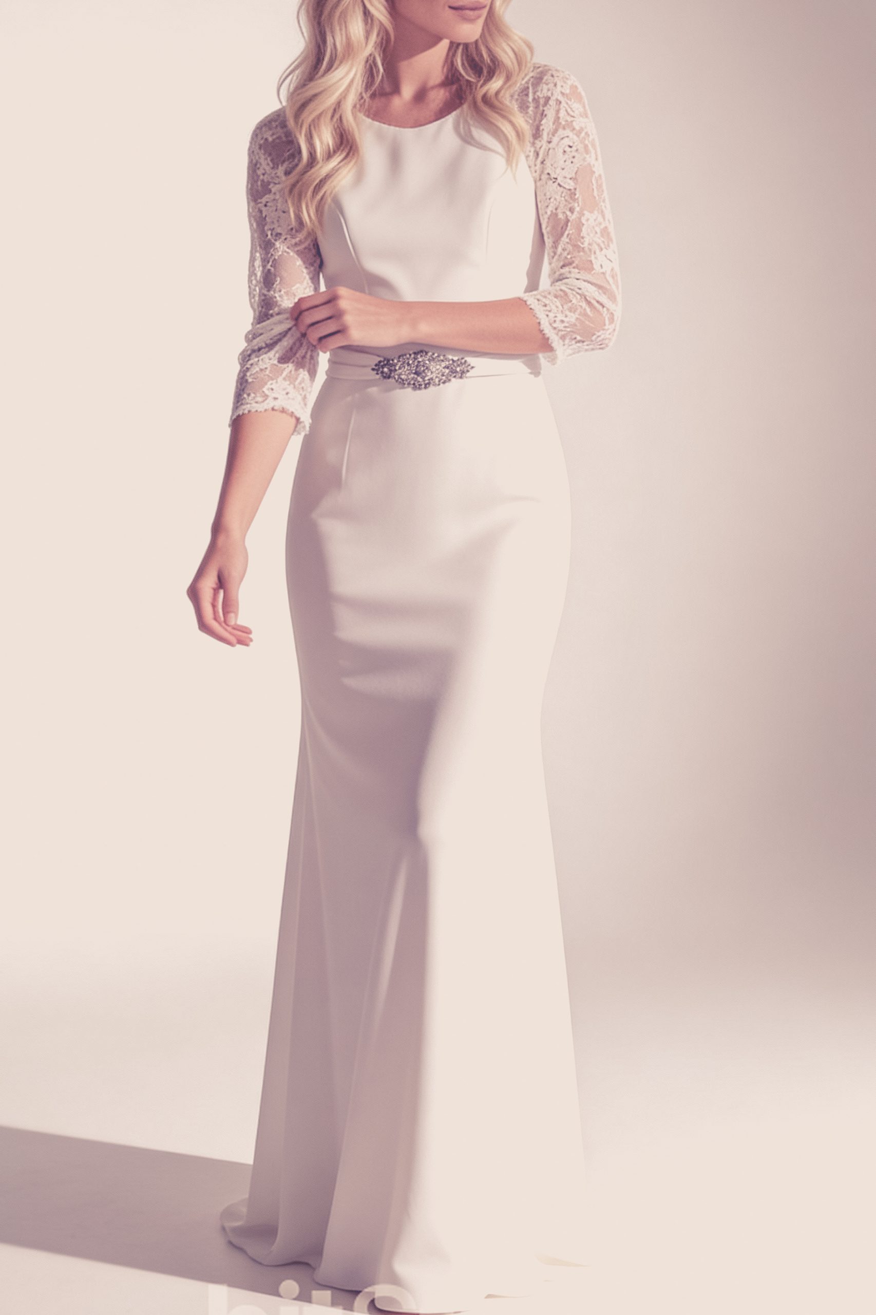 Vestido Base PERSONALIZADO de tipo SIRENA, para novias que buscan una silueta SIRENA, con telas de crepe y encaje. Falda tipo sirena. Mangas, escote y espalda personalizadas.