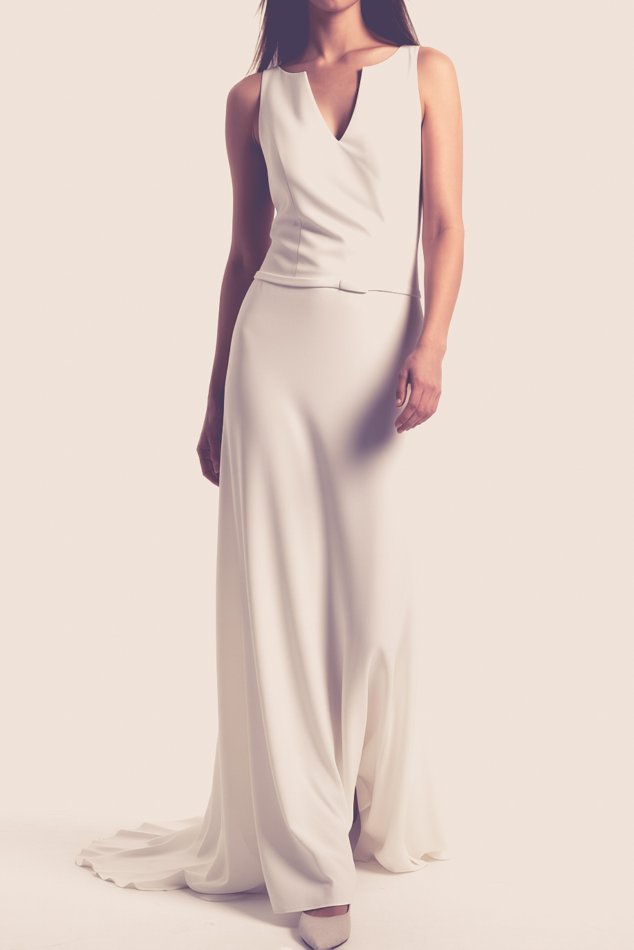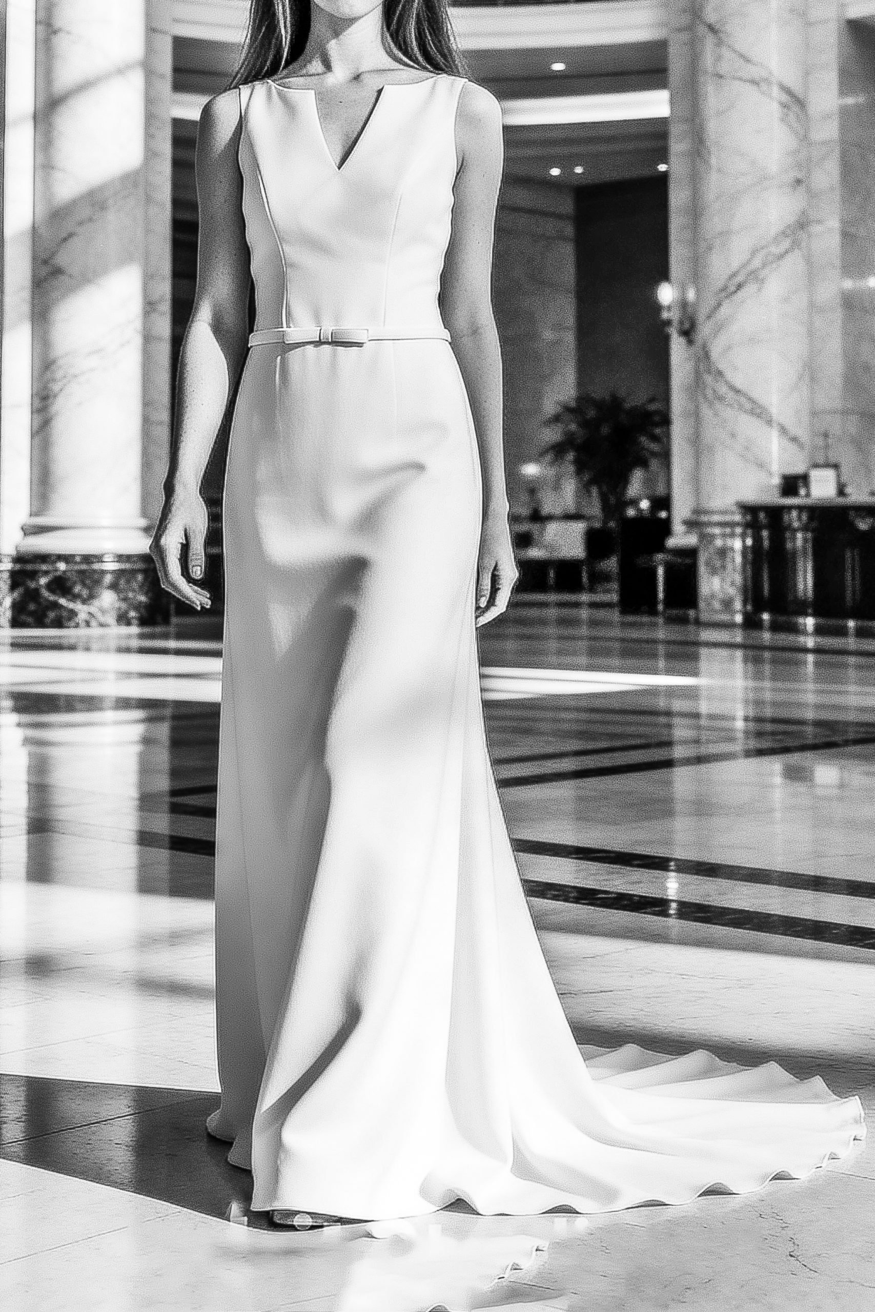 En AnaBlanca Novias, encontrar un vestido que combine una silueta entre sirena y recta con un estilo minimalista es posible gracias a su cuidada selección de diseños que priorizan el crepé y los cortes depurados.